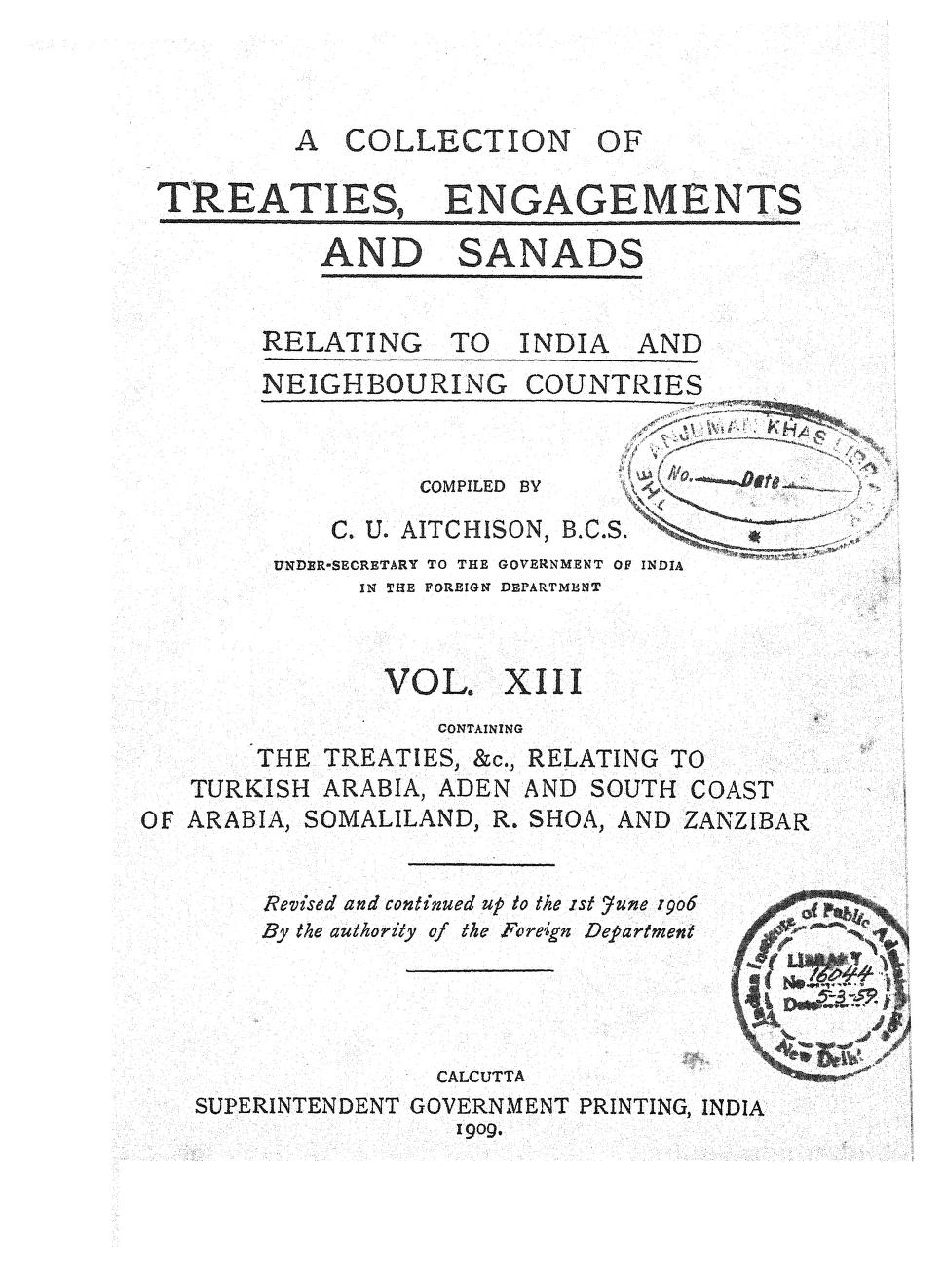 A Collection of Treaties Engagements and Sanads 1909 Vol. XIII.pdf