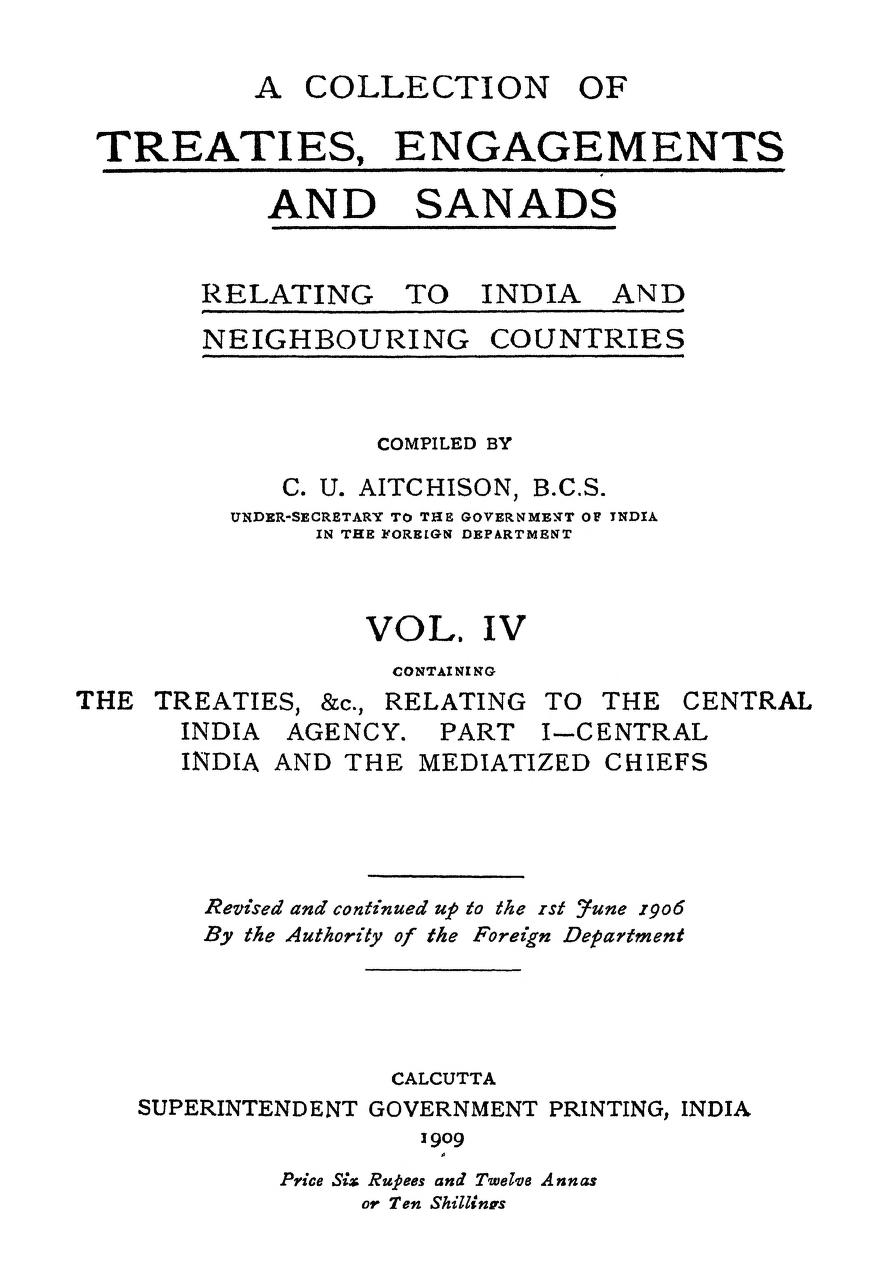 A Collection Of Treaties Engagements And Sanads Vol- IV