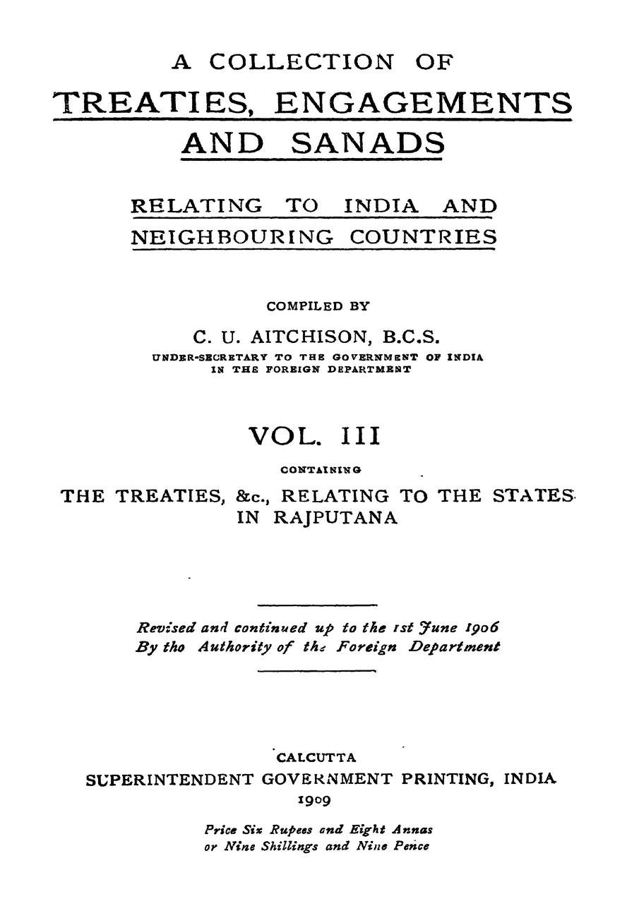 A Collection Of Treaties Engagements And Sanads 1909 Vol. IIII